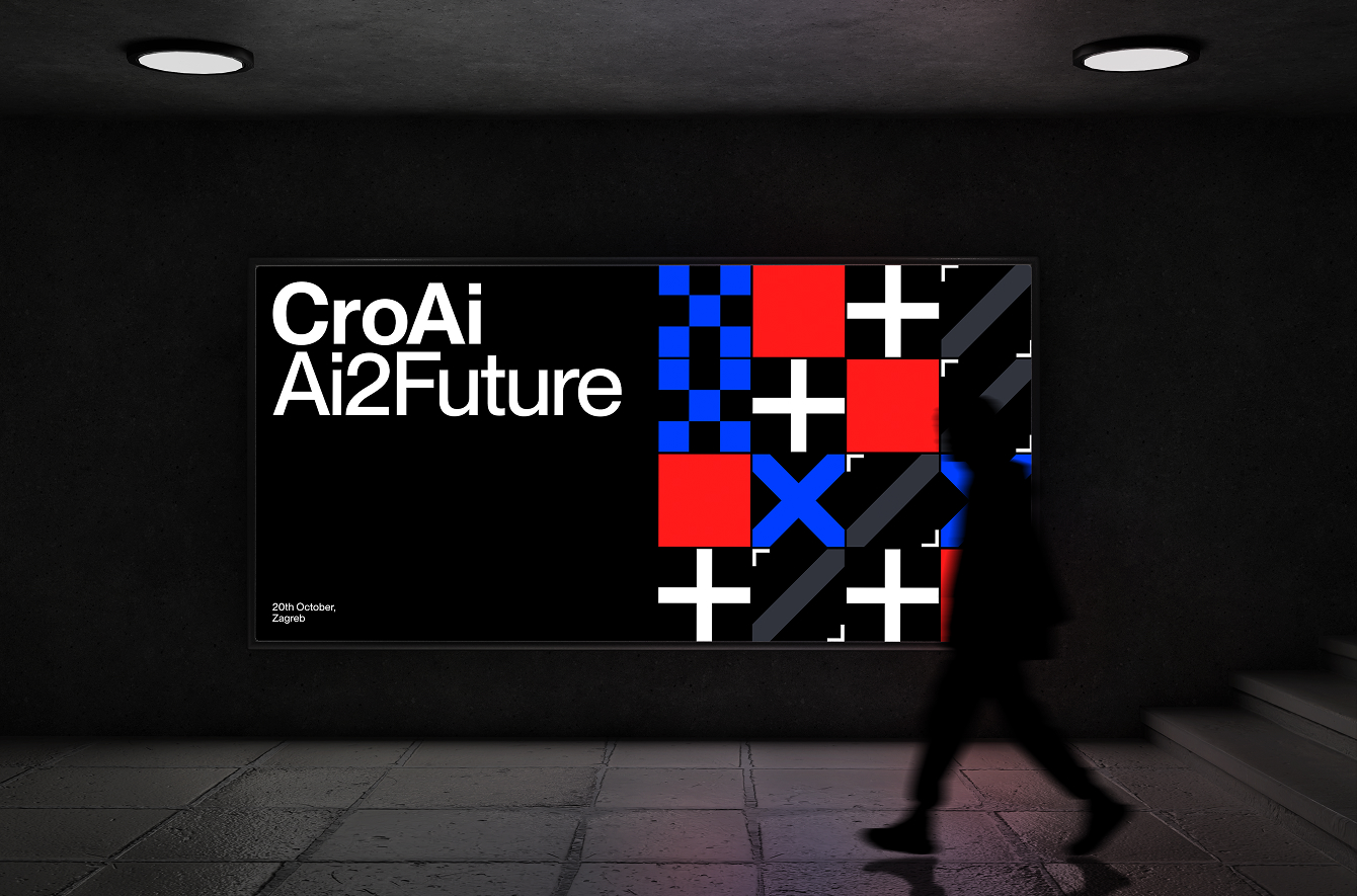 CroAI promotes and educates about artificial intelligence in Croatia. It brings together companies, institutions, and individuals from different fields, from technology to the humanities, to show that AI is not reserved for experts but open to everyone. The visual identity reflects this inclusiveness through a system that combines technological precision with creative expression. Built on a geometric grid, it adapts to different contexts with clarity and rhythm. Glitch-like motion introduces a sense of energy and transformation, while national colors and mathematical forms root the identity in its origin and purpose. This balance makes it engaging for both technical and non-technical audiences.